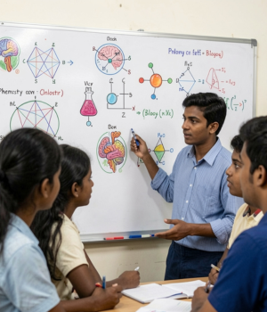 Modern science education often prioritizes completing the syllabus over building clarity.Large coaching systems handle hundreds of students in a single classroom - where individual attention becomes limited.But real learning doesn’t happen in crowded systems.It happens through: